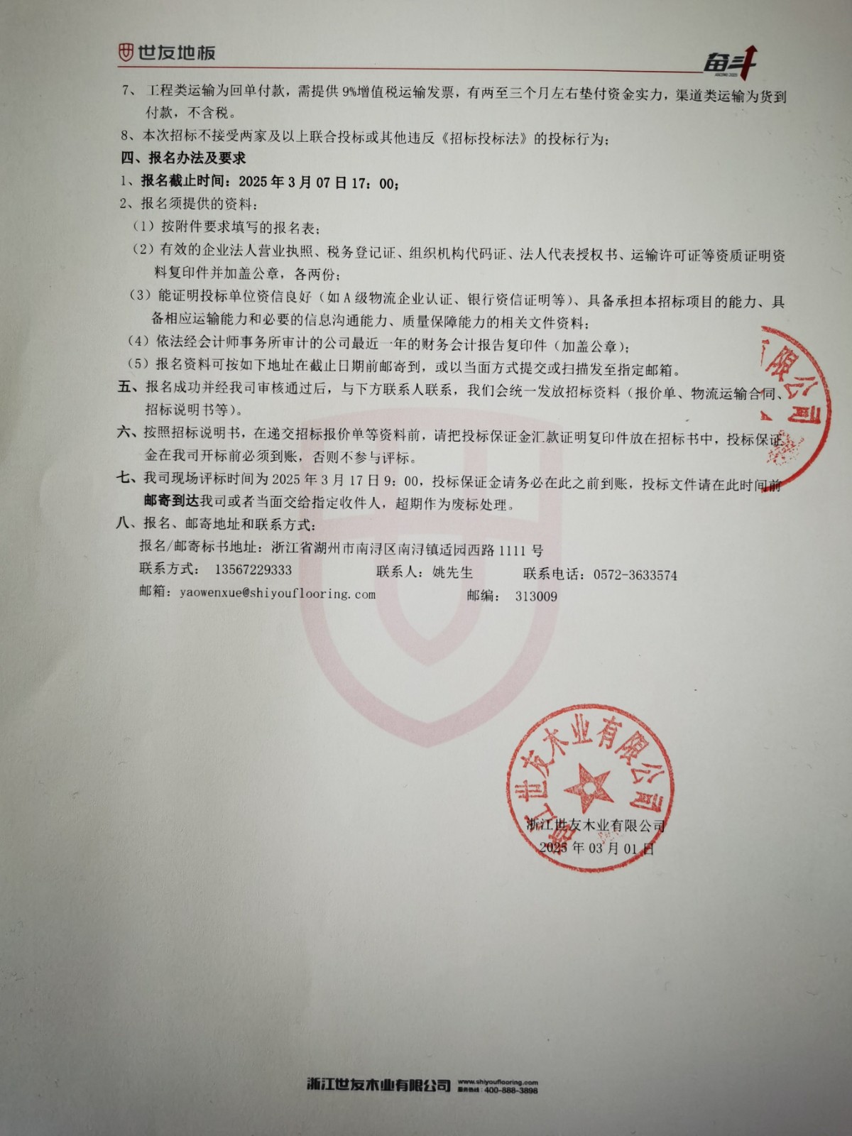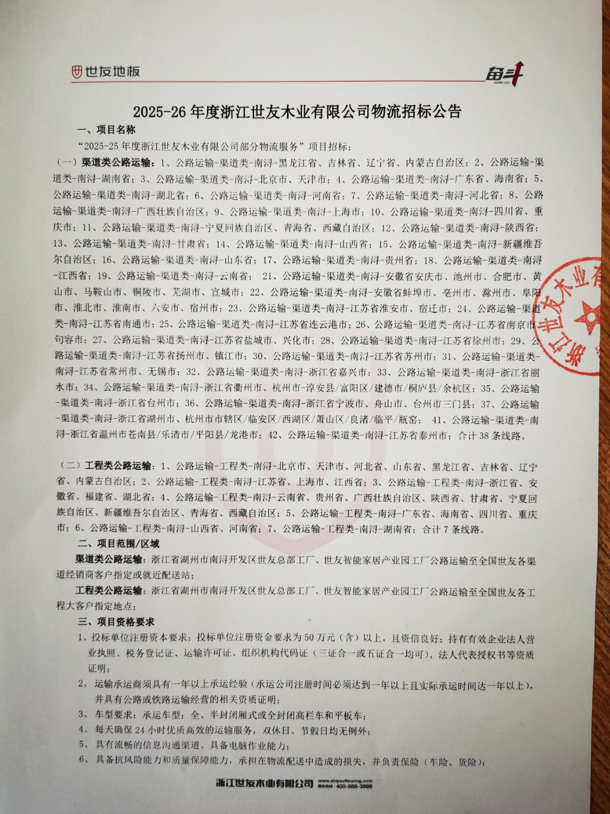 2025-26年(nian)度浙江(jiang)世友木(mù)業有(yǒu)限(xian)公(gōng)司物(wù)流招标公(gōng)告-浙江(jiang)世友木(mù)業有(yǒu)限(xian)公(gōng)司