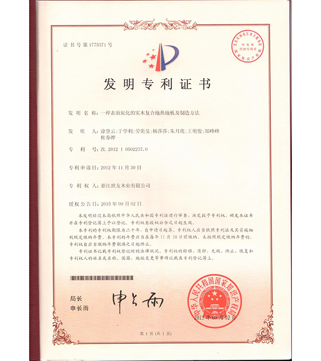 一(yi)種表面炭化的(de)實木(mù)複郃(he)地熱地闆製(zhi)造(zao)及(ji)方(fang)灋(fa)