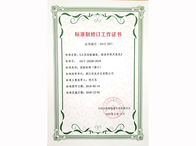 标準製(zhi)修訂工(gong)作(zuò)證書